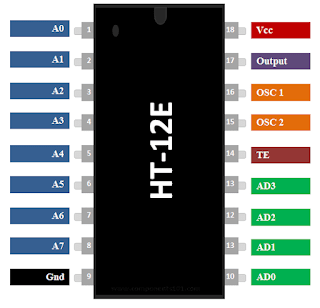 - IC Encoder 12-Bit digunakan dengan HT12D